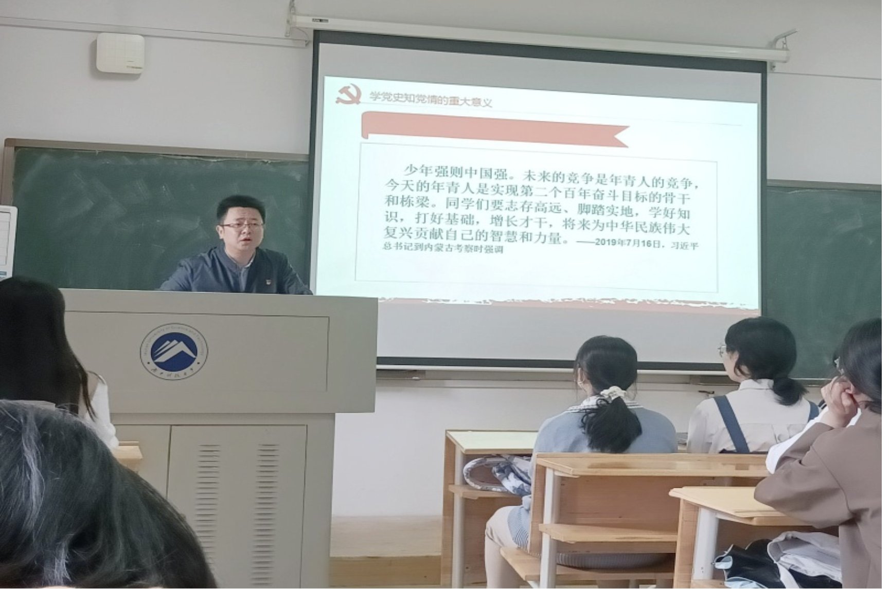 主题党课上,李康澄同志以“立鸿鹄之志,做时代新人”为主题,分别解读了习近平总书记在高校考察时的重要讲话和党的二十大报告中给当代青年的寄语,希望同学们志存高远、脚踏实地,学好专业知识,打好基础,将来为中华民族的伟大复兴贡献自己的智慧和力量。他表示,在工作中要积极发挥党员的先锋模范作用,努力在平凡的岗位上做出不平凡的业绩,为国家的富强贡献自己的一份力量。此外,他结合自己的工作经验和人生阅历,为党员们提出了许多宝贵的人生建议,并对党员们的问题给予了细致的解答,勉励党员们立向高远,不断学习进步,争做时代新人。整个课堂气氛高涨,党课在热烈的掌声中落下帷幕。