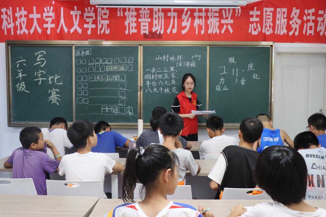 为传承并弘扬中华民族优秀传统文化艺术,进一步促使广大学生从小练就一手好字,全面提高写字水平,7月13日,湖南科技大学人文学院暑期“三下乡”社会实践团队志愿者在株洲市攸县石羊塘镇高桥少儿假期学校,举行写字比赛,本次参赛的班级为一年级至八年级。