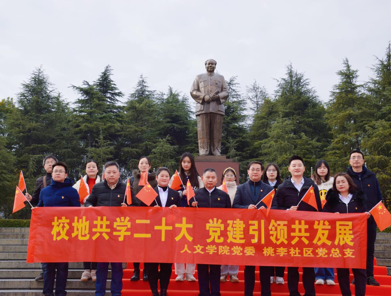 为深入学习贯彻党的二十大精神、促进校地高质量融合发展,12月15日上午,湖南科技大学人文学院党委书记曾志东、党委副书记邓辉、副院长李康澄、全体学工办老师、部分学生党员及桃李社区党员代表共赴韶山毛主席故居开展了以“校地共学二十大 党建引领共发展”为主题的联学共建活动。