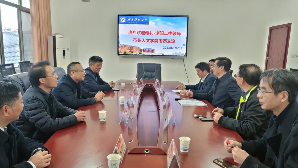 交流会伊始,院党委书记曾志东致欢迎辞并介绍了学校学院发展概况。而后双方进行了友好交流。雅礼-浏阳二中校领导肖敏指出,目前浏阳二中师资力量有待进一步加强,他希望能够在湖南科技大学举办专场教师招聘会,科大能推荐优秀师资力量至浏阳二中,并建立教育实习基地,优化并改善师资力量。曾志东针对该问题表示,我院将会进一步加强与雅礼-浏阳二中的联系与合作,争取为雅礼-浏阳二中培养更多优秀教师,同时推荐优秀毕业生前往当地实习就业。双方还就今后的相关合作项目,尤其是雅礼-浏阳二中所处地——浏阳市大瑶镇的花炮文化及民俗文化研究和传承等进行了深入探讨和交流。
