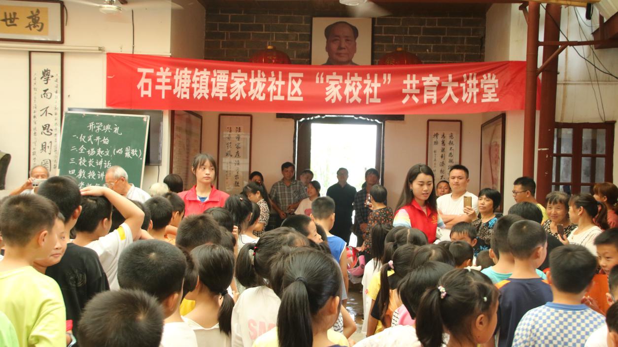 7月7日上午,湖南科技大学人文学院暑期“三下乡”社会实践团队在攸县石羊塘镇高桥少儿假期学校举行开学典礼,二百多名孩子与志愿者齐聚风雨棚。典礼由志愿者杨舒鑫主持,石羊塘镇副镇长李鑫出席。此次支教活动为期10天,将紧紧围绕普通话普及、儿童艺术审美教育、爱国主义教育、身心健康教育等相关内容,开展主题突出、特色鲜明、形式多样的“七彩假期 推普筑梦”支教活动。