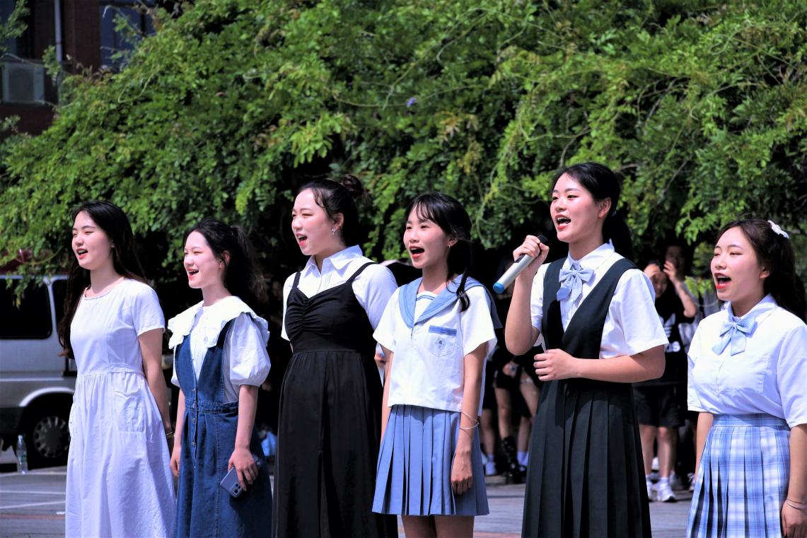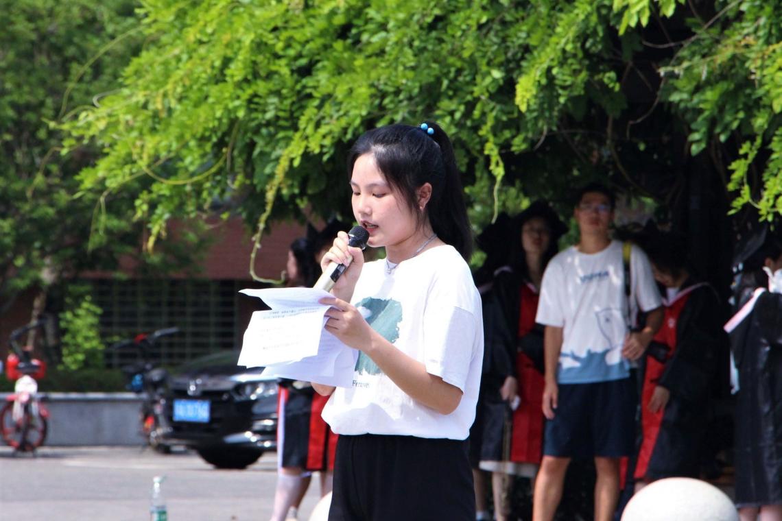 待毕业生们于祝福墙旁观赏签名留言贴后,主持人宣布本次欢送会正式开始。“那些年错过的大雨,那些年错过的爱情,好想告诉你,告诉你我没有忘记。”文艺部一首扣人心弦的《那些年》,道出多少毕业生在最后青春时光里的不舍、遗憾与迷茫。随后是感人至深的多人朗诵表演《青春颂》,“行而不辍,方知未来可期!鲜衣怒马少年时,不负韶华行且知!”表演者句句声情并茂、铿锵有力,抑扬顿挫的话语传递着学弟学妹们对毕业生学长学姐们的真挚祝愿,将欢送会气氛推向高潮。表演环节结束后,人文学院各领导老师与全体毕业生合影留念,所有感激、祝福与憧憬都定格于此刻。
