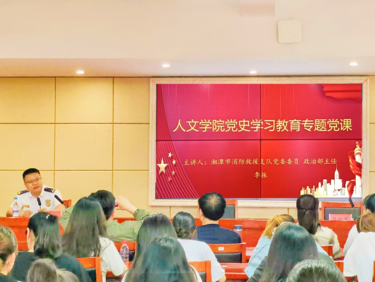 5月25日下午,湘潭市消防救援支队党委委员、政治部主任李振同志应邀为我校人文学院师生党员讲授专题党史课。