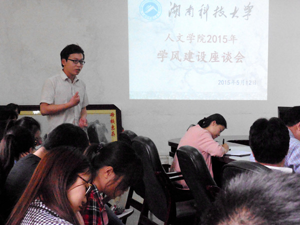 为营造良好的学习氛围、加强学风建设,以促进学生更好成长成才,在教学礼拜周之际,人文学院于5月12日中午在第十教学楼426会议室,召开了学风建设座谈会。院党委副书记颜柯、团委书记罗振军出席此次座谈会,与各班学生代表就有关学习和生活方征求意见。
