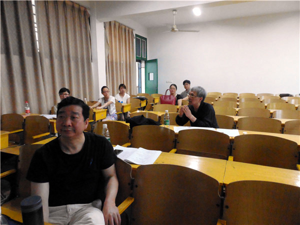 本次竞赛分为教师讲课和老师间的经验交流分享两部分。教师讲课先由经验丰富的老师进行讲课示范。“中国人可以说是世界上玩泥巴玩得最有技巧的,一下子就玩出了陶、瓷器。”我院吴广平老师作为示范老师开讲了,“古人在‘洗刷刷’洗澡的时候,搓出了长条的黄泥,于是产生了‘人是泥变的’的想法,进而类比联想,黄色与土地密不可分,是土地的象征。”吴广平老师对《击壤歌》进行细致分析,从‘黄土造人’,‘以黄为尊’到‘黄色的古今异义’,虽然才短短二十分钟却赢得了阵阵掌声。