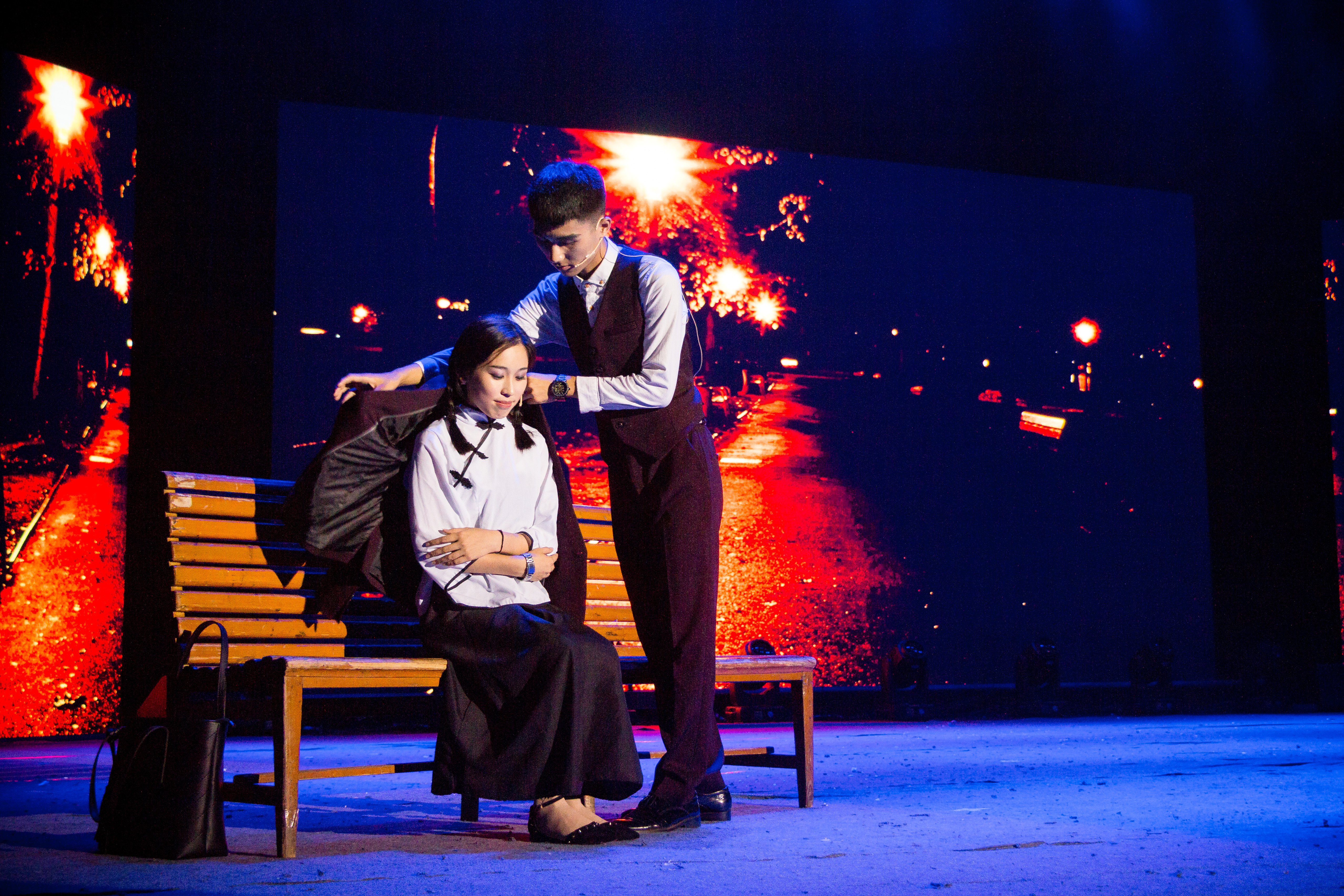 晚会进行到尾声,是优秀毕业生们的倾情合唱串烧,《小幸运》、《凉凉》、《光阴的故事》、《See you again》,或清新惆怅,或古韵馨香,或伤感难过,一曲曲娓娓唱来,惹人落泪。回放着毕业照的深邃背景下,毕业生们列成整齐的三排,随着歌声身体轻轻起伏,从开始到曲终,有许多人唱着唱着就流下眼泪,泣不成声。正如最后一首大合唱《时间煮雨》所说:明月夜送君千里,等来年秋风起。相聚离开都有时候,没有什么会永垂不朽,歌曲总有唱完的时候,晚会总有剧终时,但故事和情怀永不落幕。舞台上的戏曲演尽人间悲欢,而大学生的人生里却还有风华正茂的锦绣大道。