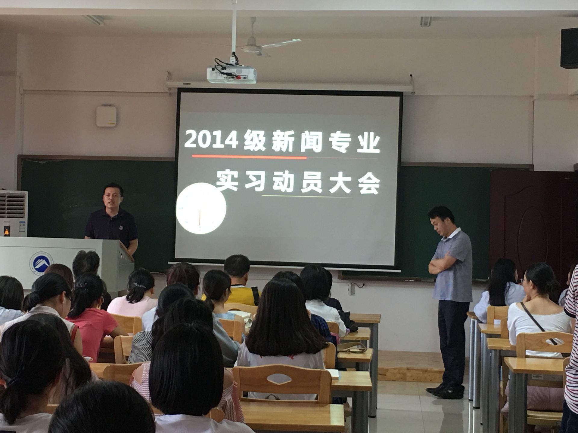 9月19日下午2点半,我院新闻专业2014级实习动员大会在文科楼B417召开,我院副院长聂志军,新闻系主任陈功、张学知等指导老师及2014级新闻专业全体学生共同参加此次会议。
