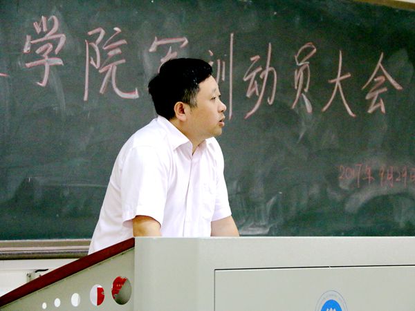 此后,党委副书记邓辉宣布了军训时间安排及军训具体组织和管理工作,强调了军训前的思想教育工作、军训效果、军训安全等问题。 他首先就10月2日开始的军训一系列日程、场地及其他安排作出说明,其中包括教官新生见面会、体检工作、军容风纪检查、队列会操检查及总结大会等。邓书记对军训新生提出三点要求:首先,他希望新生树立对军训的高度思想重视,要求各班级举行班会明确军训任务 ;其次,军训应具有相应效果,希望军训培养新生严于律己的品质并见利于之后的学习生活;最后,邓书记着重强调了安全问题,学生干部在军训期间既要把工作做好,也要保证军训过程中的安全,采取适当的工作方法。
