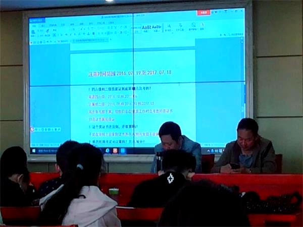 随后,赵晗冰老师在会上介绍了学校对我院综合素质测评工作的要求,她指出,我院将要在11月3日、4 日完成14、15、16级学生证书原件的审核,11月5日、6日完成学生的自评与互评,11月12日将要完成我院所有的综合素材测评工作。
