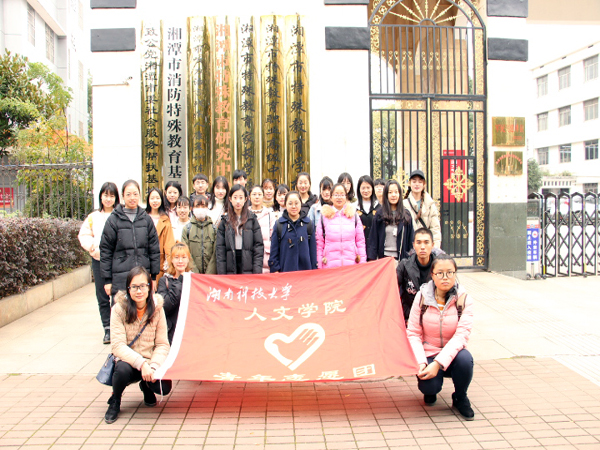 为弘扬社会主义核心价值观和大学生服务精神,展示志愿者风采,12月12日下午二时,我院开展第五期“走进特殊学校”志愿活动。此次活动以“携爱同行”为主题,旨在拉进与小朋友们的距离,使小朋友们更好地感受世界、聆听世界。在志愿团副部金妤洁的带领下,我院青年志愿团及十九名志愿者抵达湘潭市特殊学校,与特殊学校语训部小朋友进行交流。