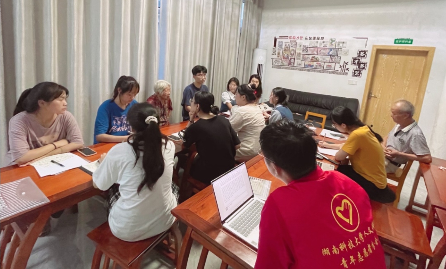 日常开会,强调安全防护第一位。“给孩子们传授知识之余,更为重要的是保证他们的安全,社区周边湖泊池塘比较多,一定要做好防溺水的宣传。”例会上,湖南科技大学退休教授夏昭炎及其老伴杨莲金多次强调做好防溺水安全教育。