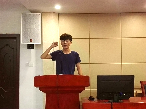 上任团委学生会主席李煜总结了上一年度团委学生会各项工作、活动的开展情况以及取得的成绩。他说我院上年度获得了优秀团委学生会称号,这得益于全体学生干部的努力。同时,他也指出团委学生会工作的一些不足。希望新任的学生干部去糟取精,把学院建设的更好。