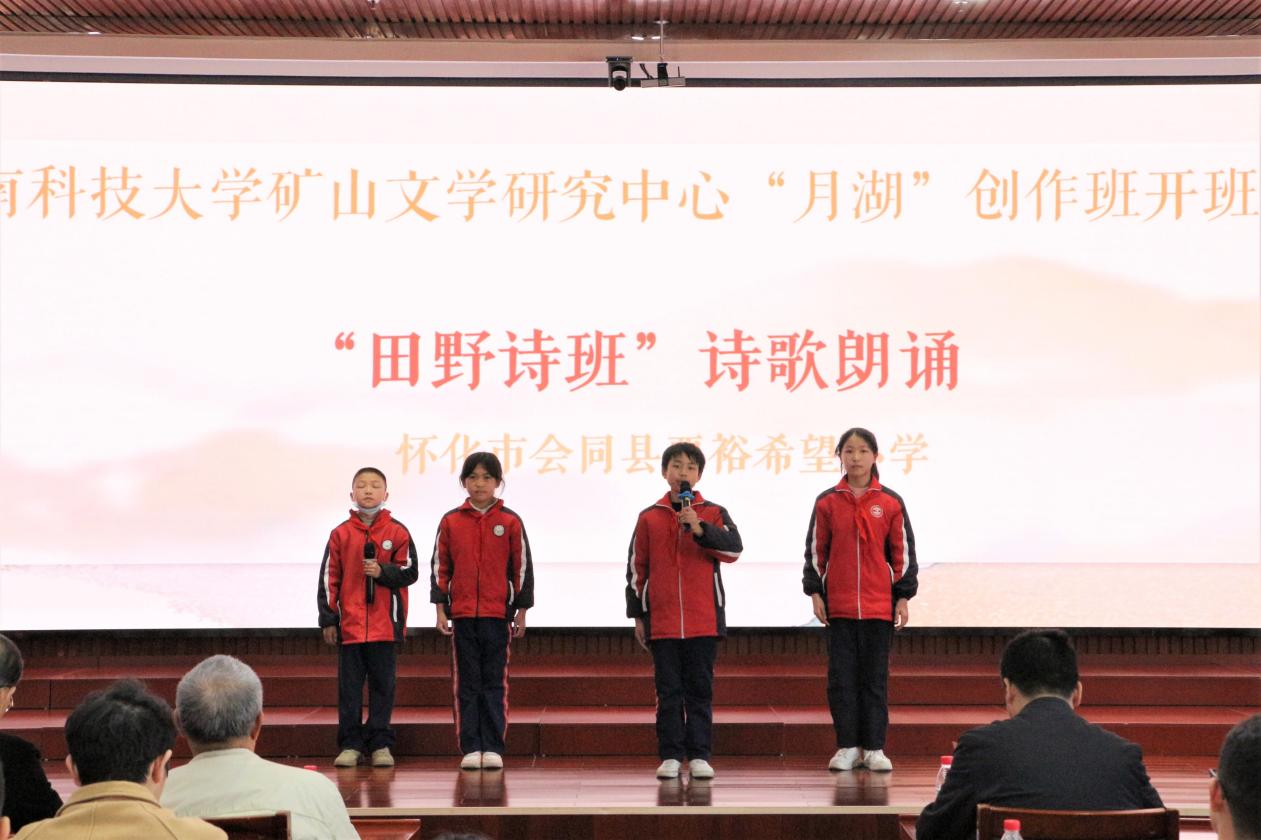 开班仪式上,周智华指出:“此次活动既是一次难得的学习契机也是重要的交流平台,这不仅有益于促进育人资源、提升我校人才培养质量,促进校园文化建设,同时有利于加强和拓展作家、读者和学者之间的交流,可以称得上是一次真正的文学盛会。”谭谈表示:“今天我们和你们聚在这里,是‘朝阳’和‘夕阳’的面对面,而月湖创作班正是你们的练军堂,希望你们可以抓住机会好好练习,未来可以成为一名英雄的作家。”吴投文在发言中传达了对创作班学员们的深切祝福,他表示,学校领导高度重视“月湖”创作班,在场的36位学员都是从人文学院脱颖而出的,“月湖”创作班将致力于强化学员的写作兴趣、提高学员的写作技能,让创作班全体学员成为现代化新型写作人才。仪式在创作班学员代表与怀化市会同县粟裕希望小学“田野诗班”四位小学生的朗诵声中圆满结束。