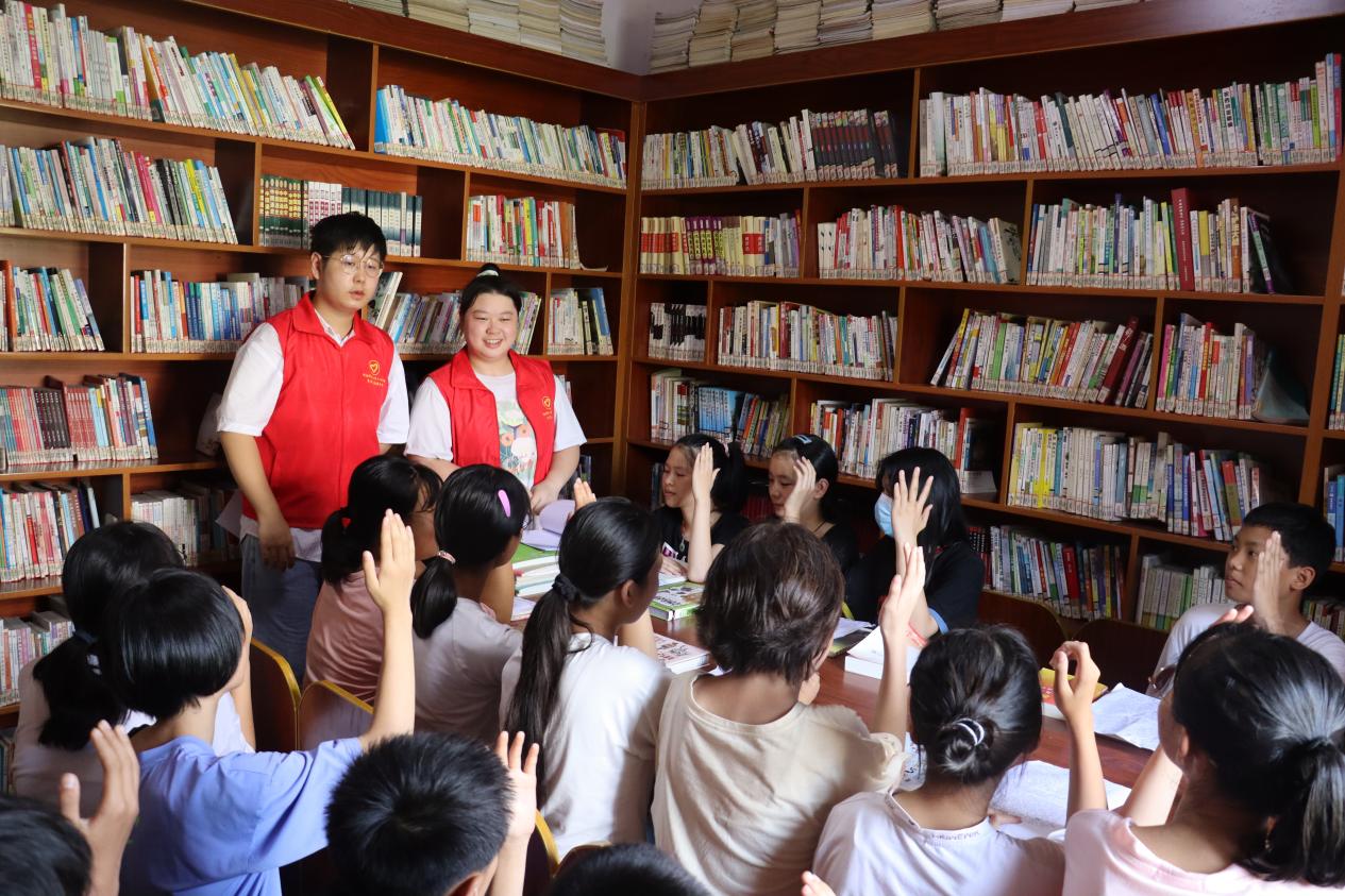 袅袅炊烟,小小村落,在株洲攸县石羊塘镇谭家拢村的一角,阳光下的农家书屋显得分外静谧。7月14日,湖南科技大学人文学院暑期“三下乡”社会实践团队志愿者和高桥少儿假期学校七年级的同学们一起来到农家书屋举办读书分享会,共同领略书中英雄人物和经典故事,以进一步培养良好的阅读习惯,提升文化素养,加强乡村精神文明建设。