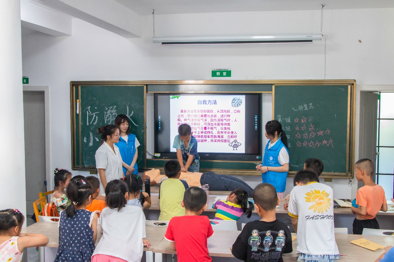 生动有趣的宣传片、迫真细致的场景模拟、和谐有爱的互动交流......一场热闹非凡“防溺水”安全教育课,为学生们送上一份详实的“溺水急救指南”。暑期“三下乡”实践团队指导老师曾思妍说:“我们给孩子们上这样一堂课,希望他们可以掌握一些急救的知识,比如心肺复苏、人工呼吸,然后也让他们掌握一些自救知识,在他们万一遇到紧急情况的时候,能够有一定的安全意识。”