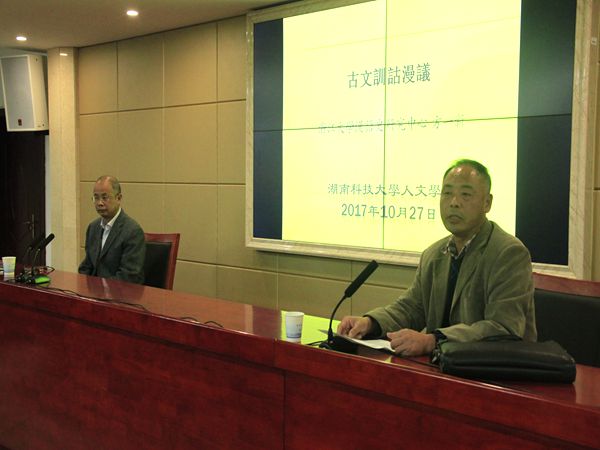 10月27日晚,浙江大学人文学院教授、博士生导师方一新先生应我院邀请于文科楼B4-1主讲以“古文训诂漫议”为主题的学术讲座。此次讲座由我院语言系教授徐前师主持,汉语言、汉语言文学专业师生到场聆听。